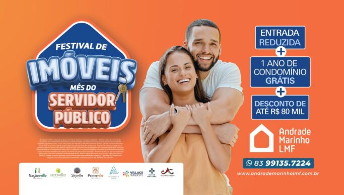 O Dia do Servidor Público é comemorado em 28 de outubro, e para presentear os profissionais que fazem parte do serviço público na Paraíba, a Andrade Marinho LMF lança a 2ª edição do Festival de Imóveis Mês do Servidor Público, que começa nesta quarta-feira, dia 01, e se estende até o dia 31/10.