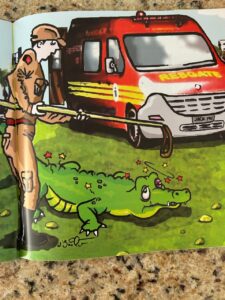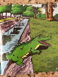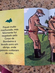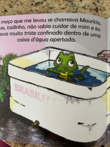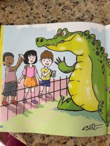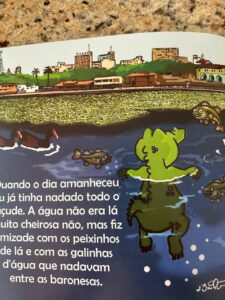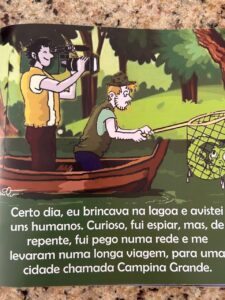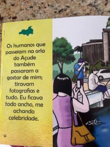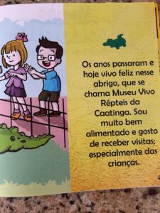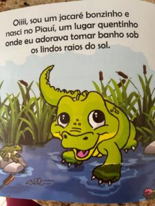 Uma vez, numa dessas escolas, assim que ela chegou uma criança ávida para conhecer a autora, com toda sua inocência, ao vê-la chegando, saiu correndo eufórica e gritando: “Êita! Chegou a mãe do jacaré”.