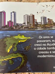 A ideia do livro é extraordinária e a composição foi magistral, pois, tendo o próprio jacaré como narrador na primeira pessoa, a doçura de Ida está muito presente no texto, chega dá para sentir na estrutura da narrativa a frequência vibratória de uma mãe contando uma estória de Trancoso para um filho à beira da cama, e ela ainda inovou ao criar uma linguagem repleta de expressões do linguajar popular regional.