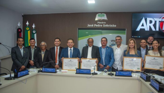 Por fim, o presidente da Câmara, Leandro Vieira, ressaltou a importância da cerimônia. “É com grande satisfação que recebemos amigos e ilustres visitantes, pessoas que colaboram ativamente para o desenvolvimento do município. Nesta primeira legislatura, temos a honra de conceder títulos de cidadania a indivíduos que se destacam por suas contribuições, a exemplo do presidente Adriano Galdino e da deputada Danielle do Vale”, afirmou.