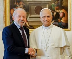 O presidente Luiz Inácio Lula da Silva (PT) e a primeira-dama Janja da Silva se reuniram nesta segunda-feira (13) com o papa Leão XIV, no Vaticano . Na ocasião, Lula parabenizou o