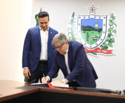 O governador João Azevêdo transmitiu, nesta sexta-feira (17), o cargo para o vice-governador Lucas Ribeiro, que ficará à frente do Governo da Paraíba durante
