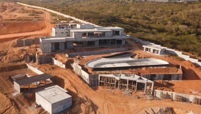 Com previsão de entrega no primeiro semestre de 2026, o condomínio está com 93% da infraestrutura pronta, incluindo 80% das contenções finalizadas e 96% do muro de fechamento concluído. Em relação à rede elétrica, 50% está concluída e 60% da rede de abastecimento de água.