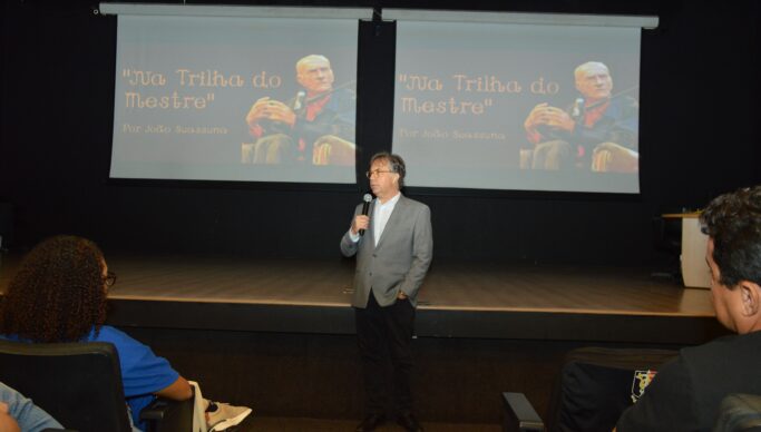 “Na Trilha do Mestre” encantou o público ao unir música, poesia, imagens e narrativas em um tributo emocionante a Ariano Suassuna, reforçando o papel da cultura como elo entre gerações e como instrumento de construção de identidade. A aula-espetáculo, em formato interativo, é um grande diálogo entre João Suassuna, o avô Ariano e o público, ocorrendo com vídeos, música e dança armorial.