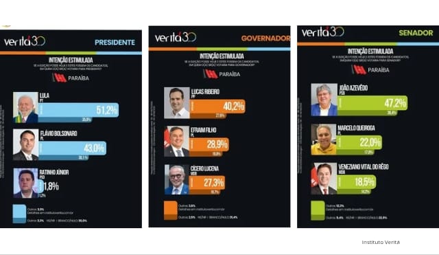 INSTITUTO VERITÁ PROJETA LUCAS E EFRAIM NO SEGUNDO TURNO COM JOÃO AZEVEDO E MARCELO QUEIROGA DISPUTANDO